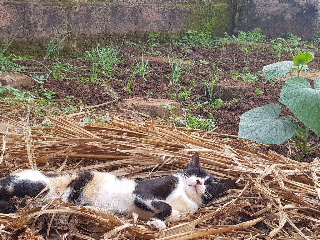 aber das erfahren sie in der nächsten ausgabe von lecrayonvert, bleiben sie dran, bleiben sie frisch und trinken sie einen glühwein für mich mit. ich weiss, ich habe ihnen weitere katzenfotos versprochen, denn dazu sind wir schliesslich hier, im internet (oder überhaupt?). daher präsentiere ich ihnen hiermit ein weiteres mal amandine, das kleine mandelchen, die dreifarbige glückskatze, gebettet auf das prächtig gedeihende gemüsebeet.